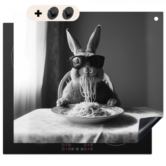 Herdabdeckplatte - Kaninchen - Hase - Sonnenbrille - Tischtuch - Nudeln - Niedlich