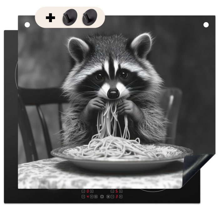 Induktion beschemer mit haken - Waschbär - Niedlich - Pasta - Tischtuch - Schwarz - Weiß